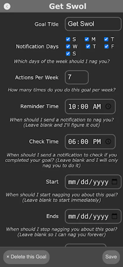 This app is intended to be that friendly reminder to help you stay motivated to succeed. Every tactic will be employed to help you stay on track from daily reminders, counting your success streak and (eventually) having a support group to cheer you to victory!