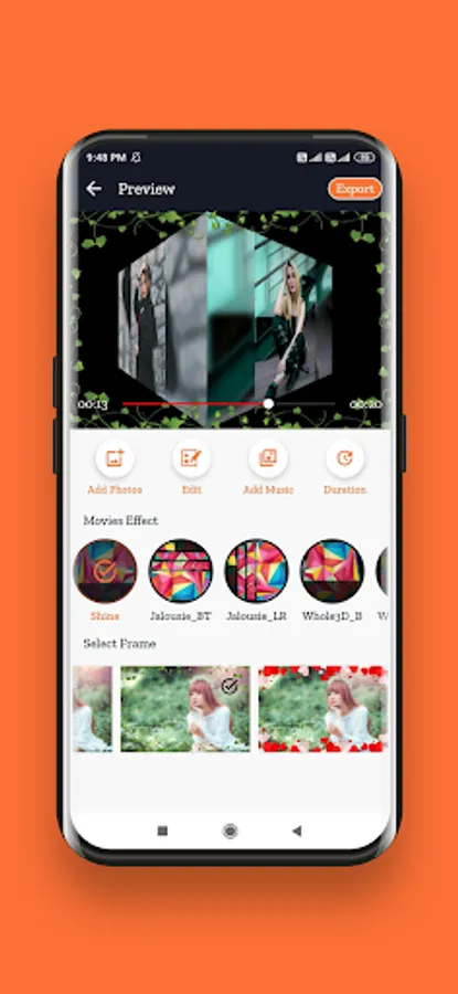 - app create video apply different frame like Birthday Frame ,Love Frame,Romantic Frame And many more..!