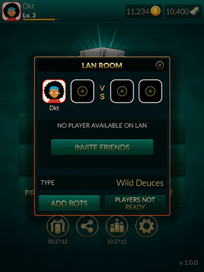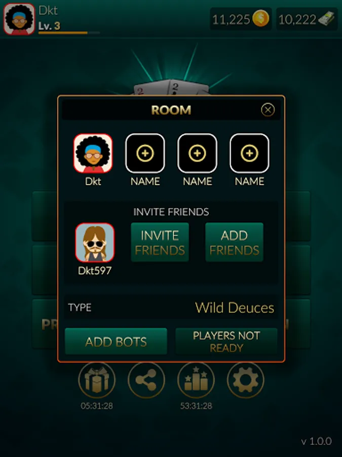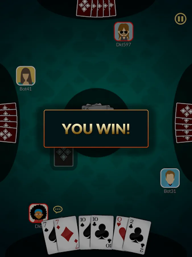 Play wild deuces game where you are given 5 cards to start with and you get to pick 1 card from discarded pile or remaining deck. Make 3 pairs to win the game. It's fun when you play with your friends.