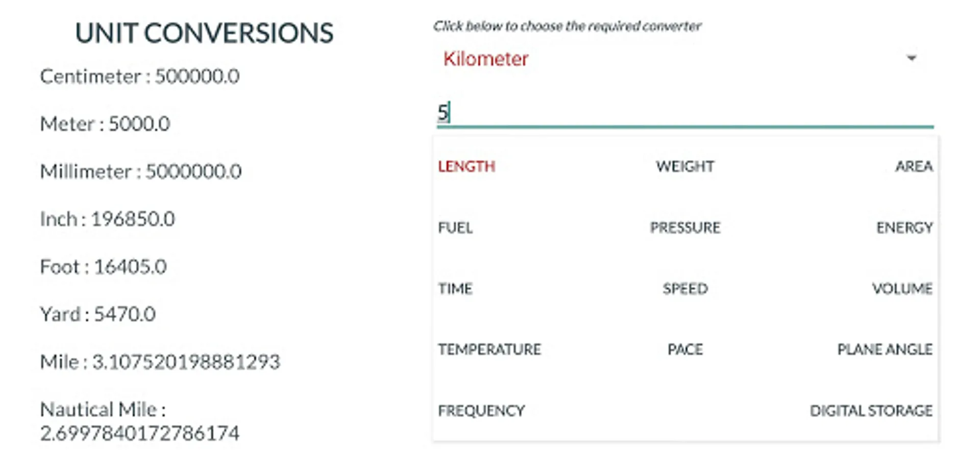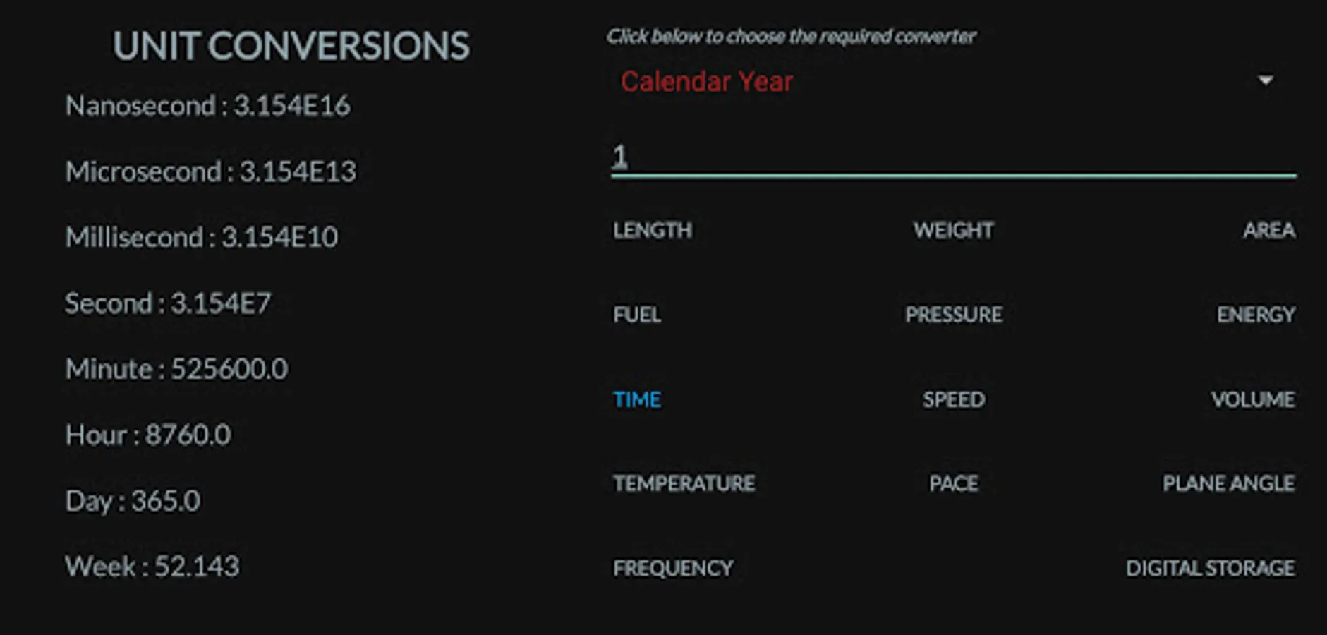5. Unit Converter : Calc-sium comes with a converter feature which already has all major units implemented. Once you convert one value to another, it magically displays all the relevant units.