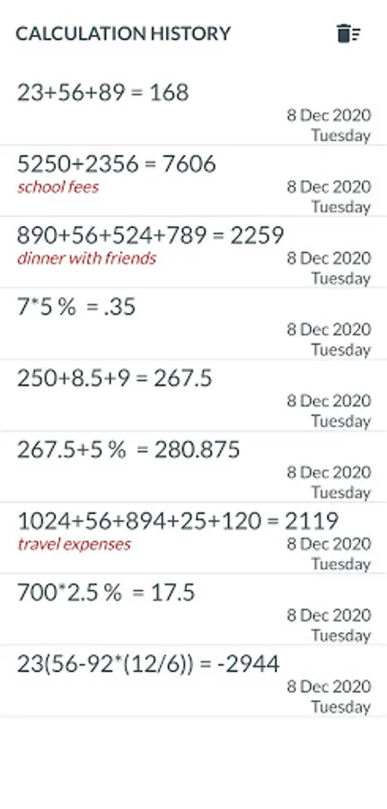 4. Calculation History : Unlimited calculation history, which can be copy-pasted to the main display with a single click. History added time and date also displayed.