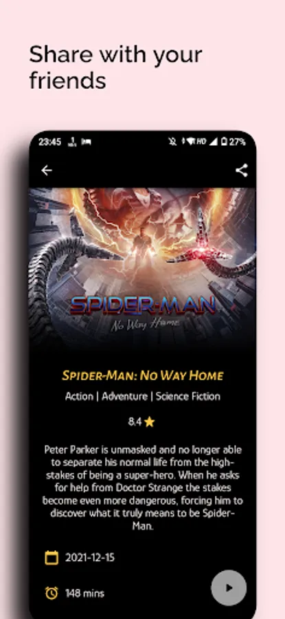 A simple app where you can get details about movies & share it with friends.