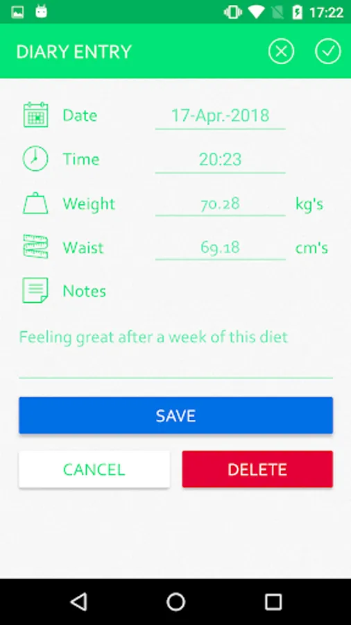 Track your weight goals easily with Weight Track. With its easy to use interface, clean charts and reminders, you'll be on your 'weigh' to your goals in no time!