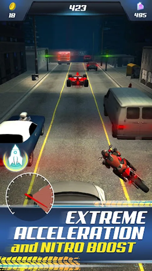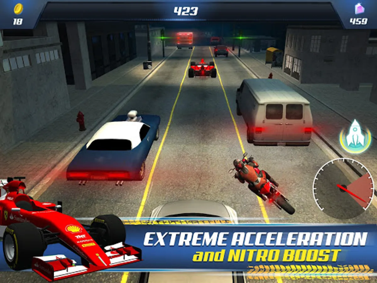 Choose your lucky vehicle and go on the most exciting speed adventure of your life. The first rule of the night race is no rules. Do anything you please as long as you are safe and sound to continue the race. But think twice before taking any chances. Drive fast and try to avoid other vehicles and obstacles appearing on the road. Do not forget to collect diamonds, they bring points and help you upgrade your vehicle.