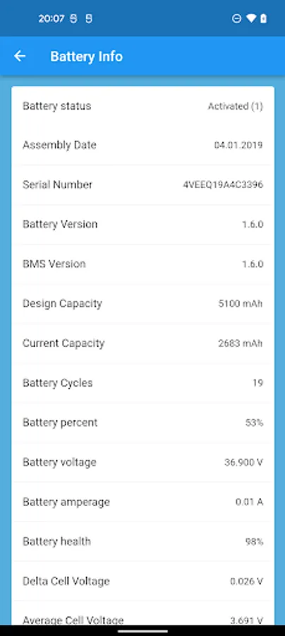 ► Battery and cells info