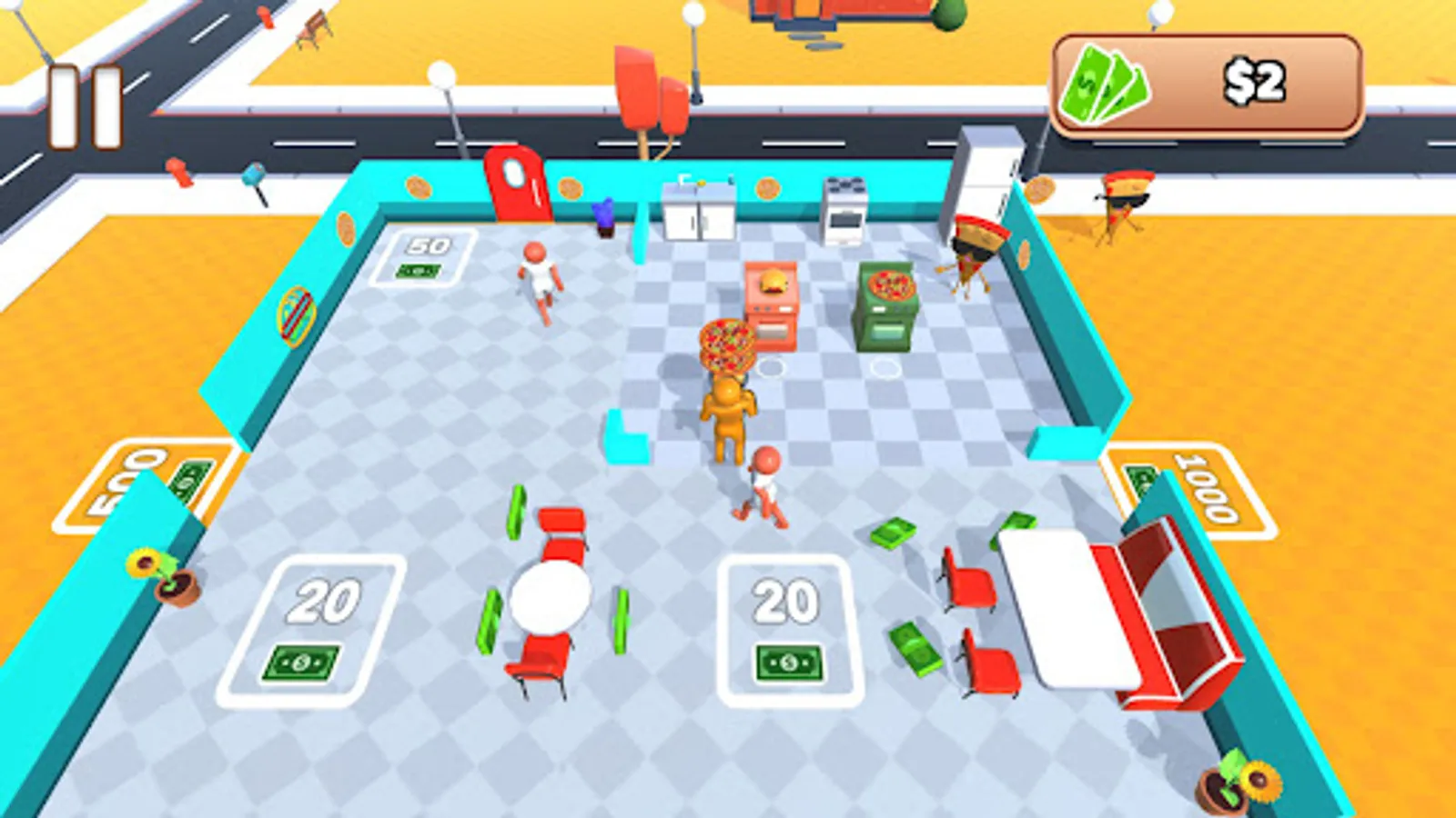 You can purchase many restaurants and waiters in the game.