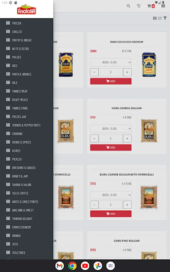 Anatolia Foods Online Store for Trade Accounts Only