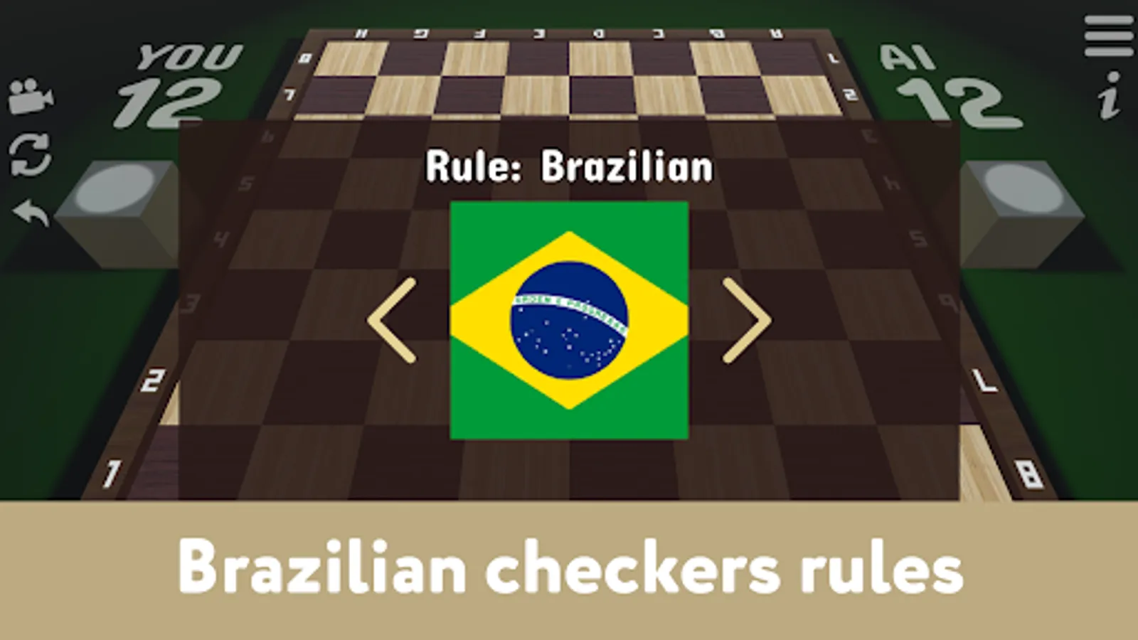 Play with classic rules of English, American, Brazilian, Portuguese, Russian checkers.