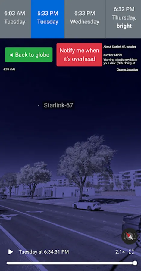 Satellites are visible in the night sky, like moving stars. You can see them just by looking up at the right time. See A Satellite Tonight shows you exactly when and where to look for them.