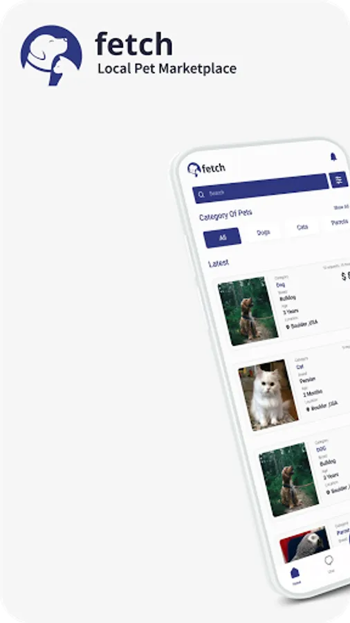 Fetch is a location-based pet-specialized online marketplace application that allows buy and sell of pets and pets adoption. The location based local ads app for pets is aimed to help people to buy pets and display pets for sale from pet owners across the United States.