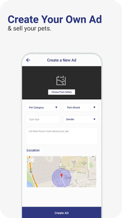 Online location-based Pet Marketplace App for all the pet lovers! Offer your love for pets the support of an online pets store that accelerates pets adoption, buy and sell of pets and pet care items through location based local ads. The online marketplace app works as an amazing pet finder for all those who want to buy pets or put them up for adoption. Use it to find pets for sale and give your favorite buddy a new forever home full of love and care!