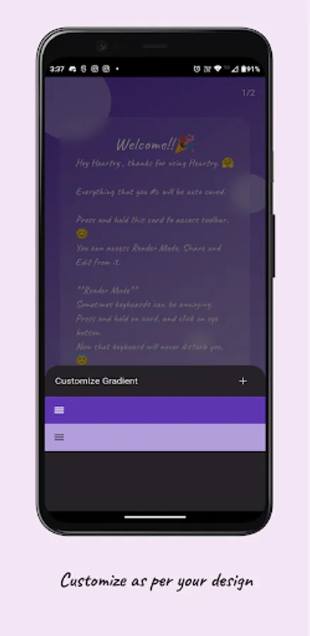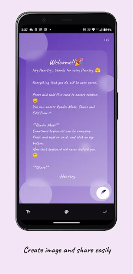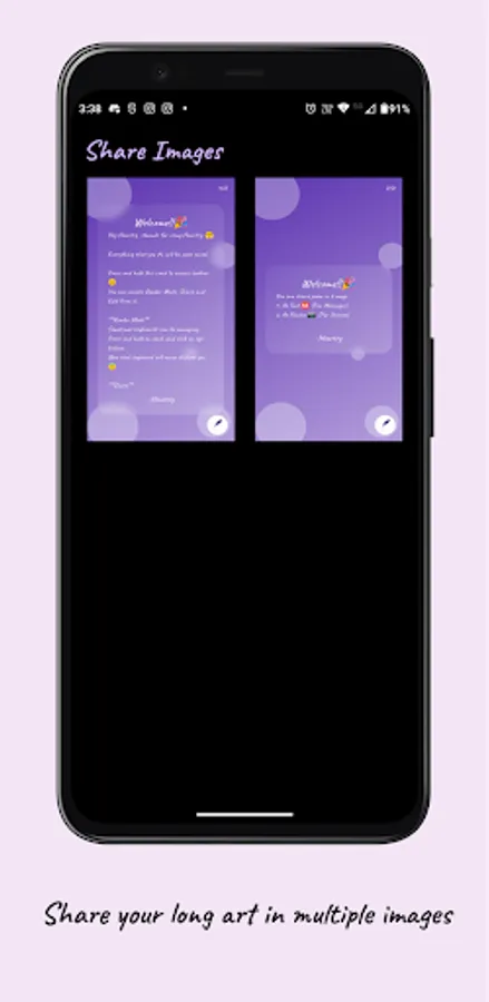 - Shareable images: Directly share poems/stories on various social media platforms as images. Easily change the font size, font colour and background gradient of the images.