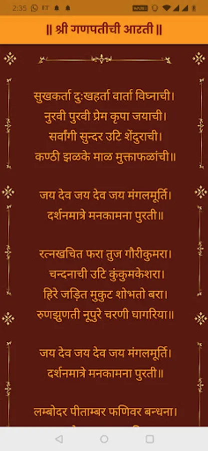 Marathi Aarthi Sangrah application is an application that contains various Hindu gods and goddess aarthi, which you can use in your day-to-day life for chanting different gods.