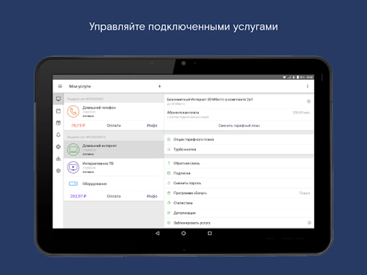 Mobile Personal Account from Rostelecom allows you to perform various operations without leaving your home.