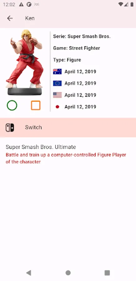 ● Tap once on an amiibo to add it to your collection, again to your wished list, and last to remove it.
