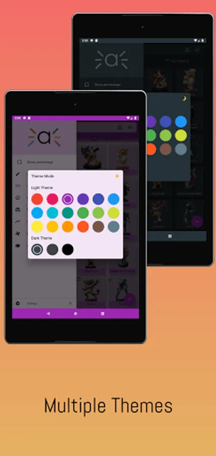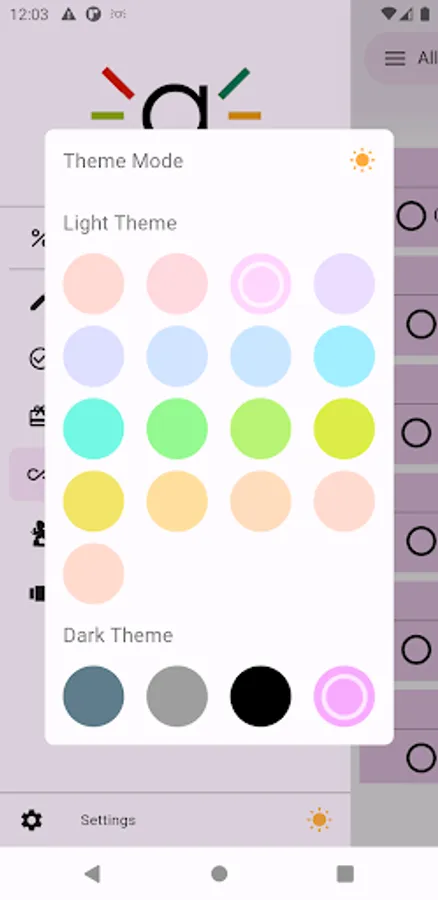 ● Multiple light and dark themes to select from the drawer or settings. Tap the theme icon in the drawer to change between light, dark or auto mode or just long press the theme icon to visualize all the themes and select your preferred one or go to settings and select appearance