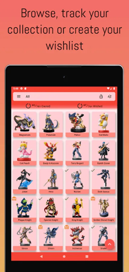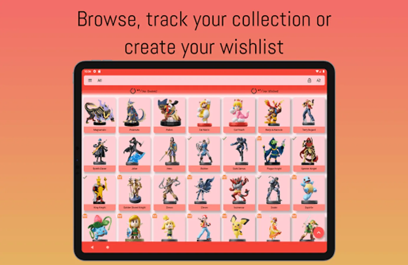 An Amiibo collection app with a wishlist and personal collection, screenshot mode to save your collection and stats, so you can always show your amazing Amiibo collection!