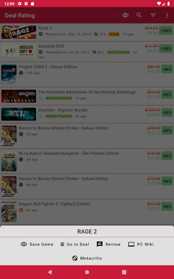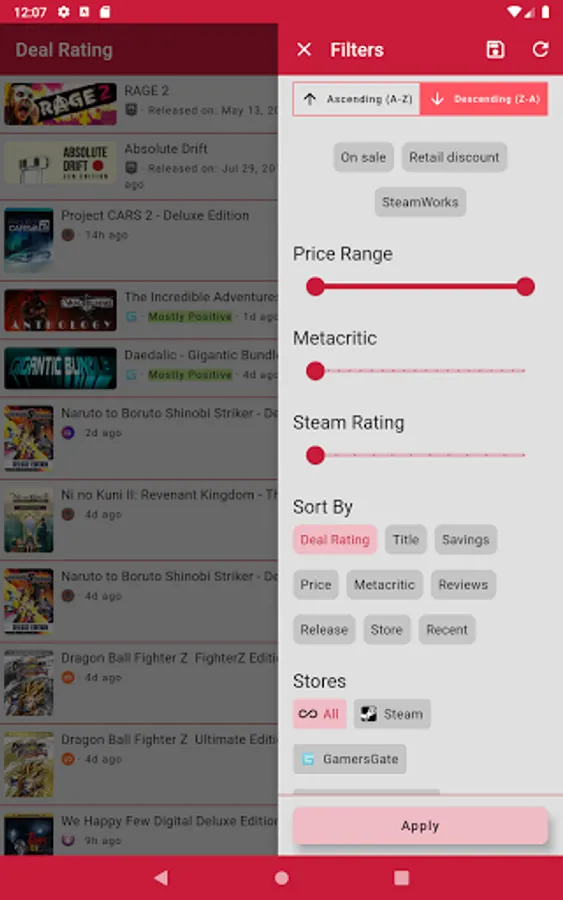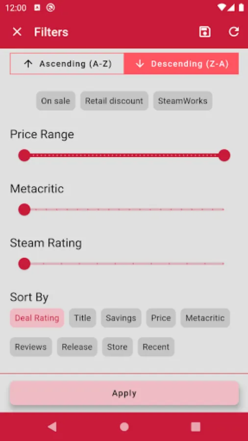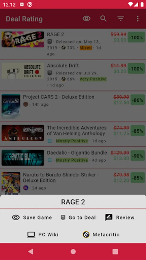 ● Create a custom filter and save it to start the app with it always, useful if you're only interested in particular stores or deals