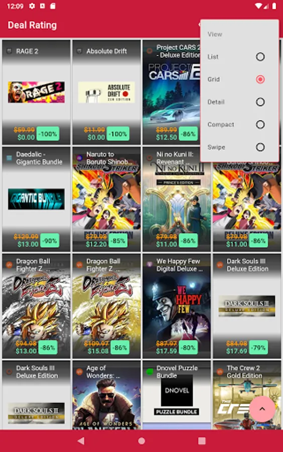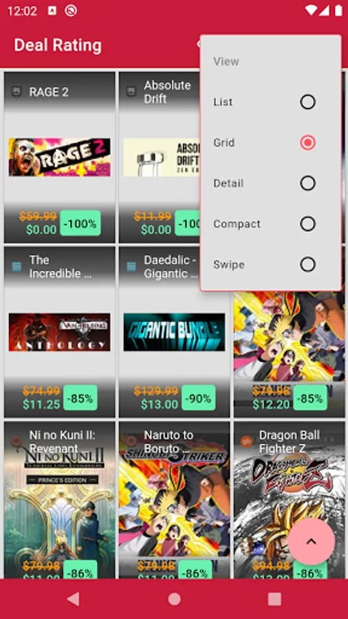 ● List, Compact, Grid and Detail to show the deals arranged in the screen