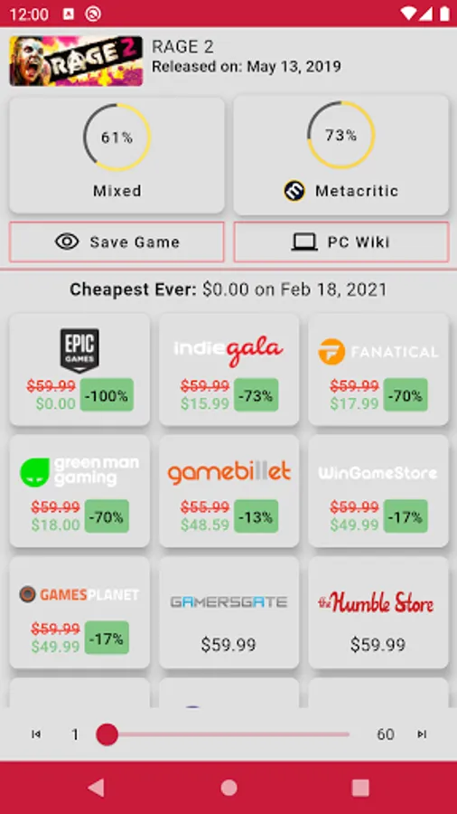 ● Deal Rating (from 0 to 10, factors reviews, price, saving etc.), Title, Savings, Price, Metacritic, Reviews, Release (release date of the game), Store and Recent (How recent a deal was found by CheapShark, not confuse with release date)