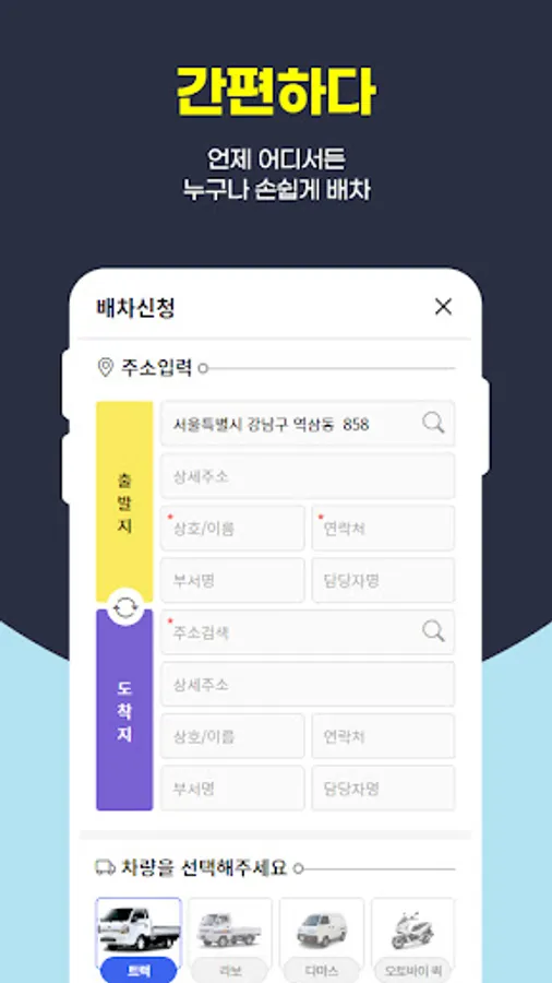 Vehicles can be dispatched to motorcycles, Damas, Labo, and various vehicles ranging from 1 ton to over 5 ton.