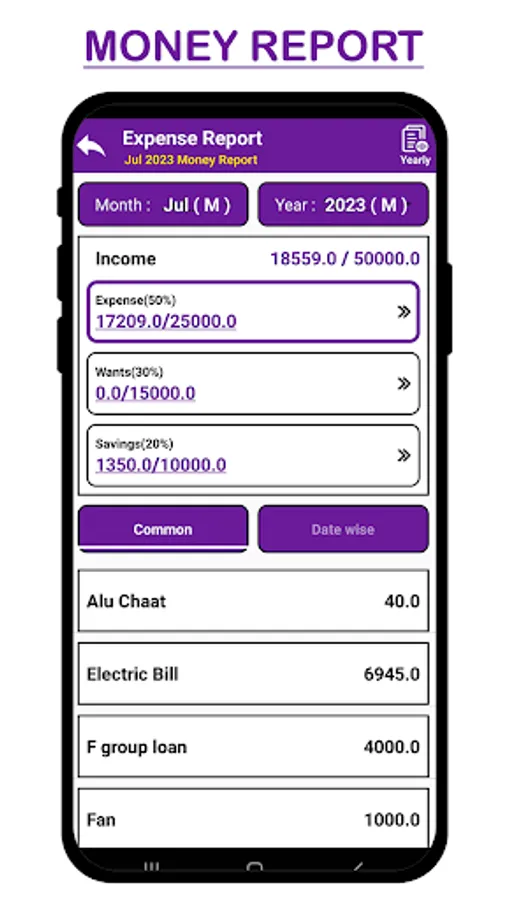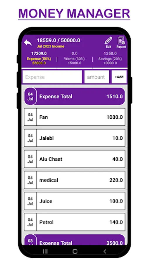 ✅ Money Manager: It help you to manage your money with the help of 50:30:20 rules.