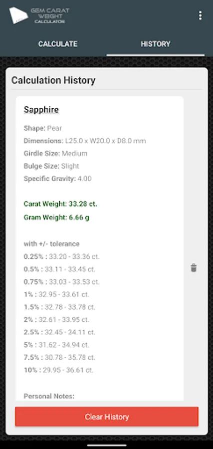 ✪ Accurately calculates gemstone carat weight, gram weight and tolerance value ranges.