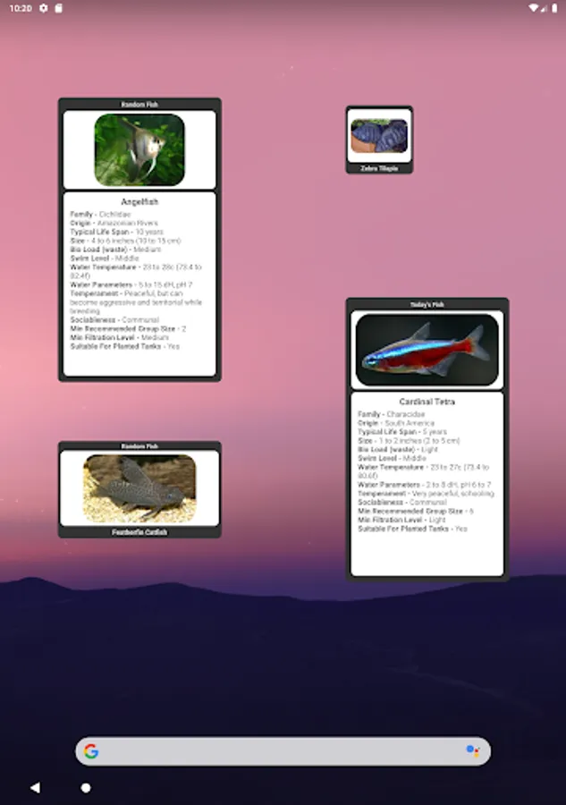 ✪ Includes daily (fish of the day) widgets and hourly updated (random fish) widgets, each available in different sizes.
