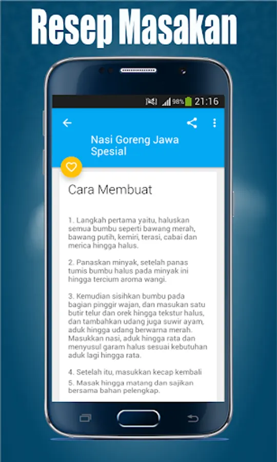 Recipes Indonesia is a mobile based application that contains a wide variety of food recipes FULL Indonesia which is based on the type of material. This application is perfect for you who are seeking to make reference fatherly cuisine. Applications OFFLINE Indonesian recipes so you do not need to fret if it was traveling at home because you can still open the application Recipes Indonesia so that you can still serving dishes for your family.