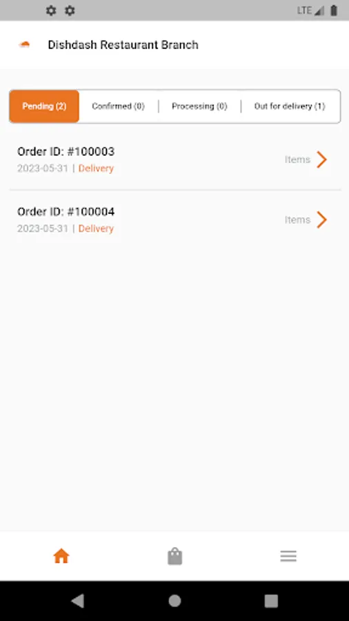 Dishdash application for branch is done for order management and tracking.