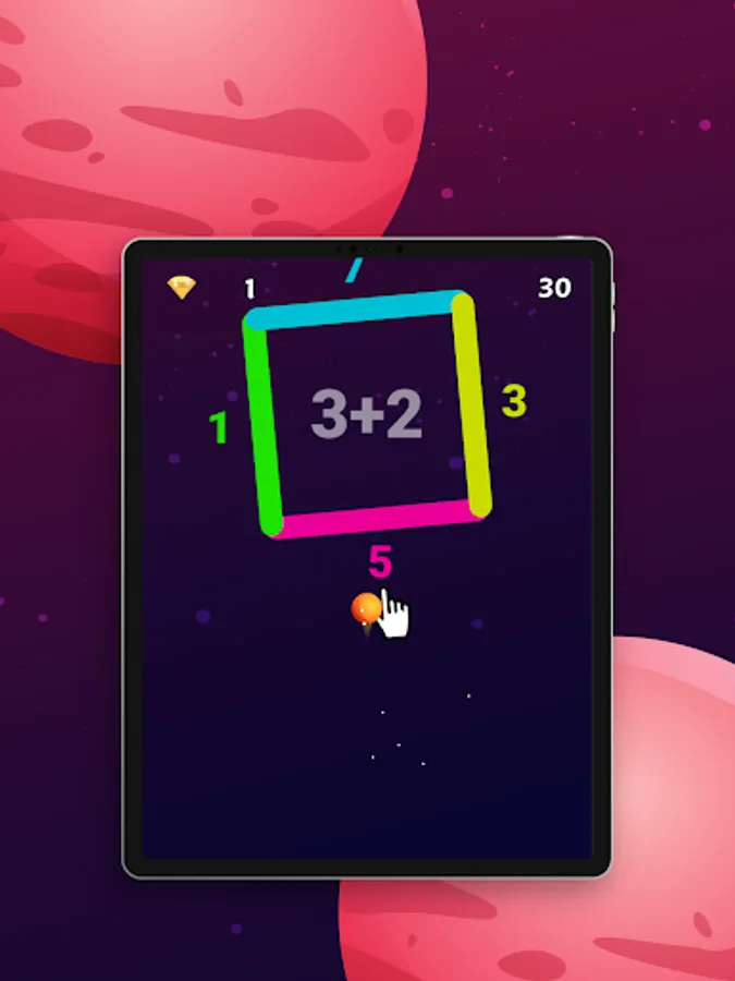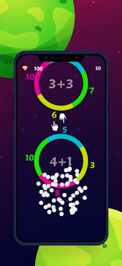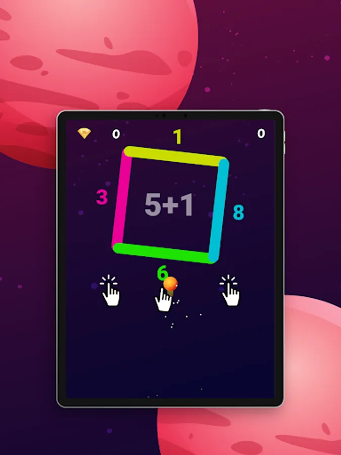 تحدي الحساب لعبة أسئلة حساب سريعة لتعليم طريقة الجمع والطرح بسرعة من خلال سرعة تحريك الكرة باتجاه الاجابة الصحيحة للأسئلة داخل مربع الألوان وعدم ترك الكرة باتجاه الأسفل