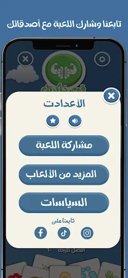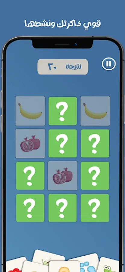 "Strengthen your memory - the memory game for children is one of the most famous memory activating games and matching pairs games for children. The game depends on the child choosing the matching pairs of Arabic and English letter cards and matching numbers and fruits, as well as choosing from animal and color cards.