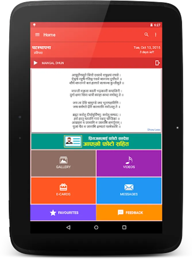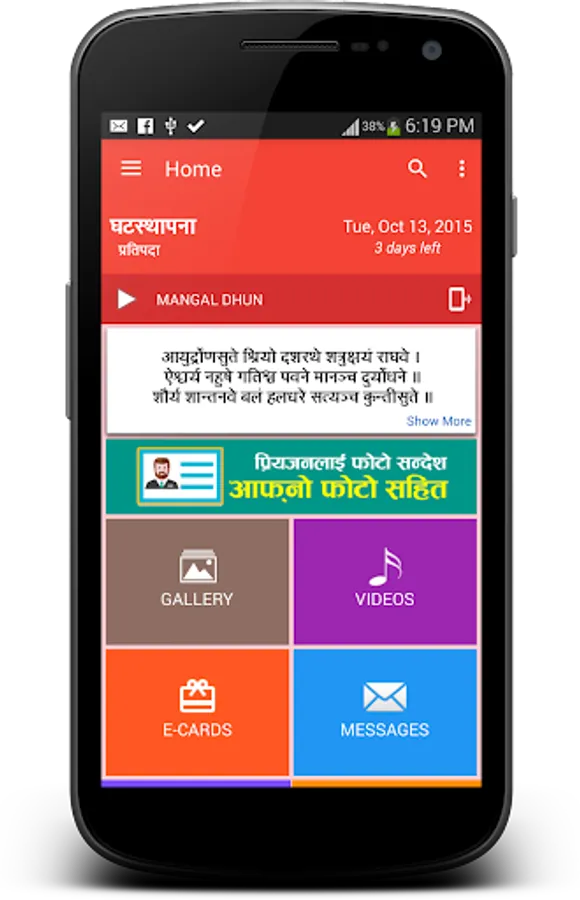 Disclaimer: All the contents- videos, audio and images included in "Dashain Tihar" app are streamed from Youtube Server and gathered from different online sources respectively. Videos are played using the official youtube player API. We don't own copyright on any of the images, audios and videos used inside our app. We only publish playlist using videos available in Youtube platform. If you think your content is used without your permission, please send us your request to remove content from our app. We will respond you positively within 48 hours.
