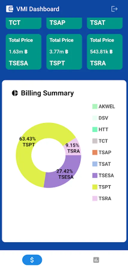 แอพ VMI Dashboard เป็นแอพบริการลูกค้าสำหรับตรวจสอบข้อมูลการขนส่งสินค้า