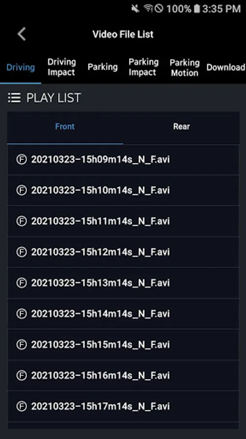 - Video File List : Can check recorded images on the list, and also, can play & download the selected files.