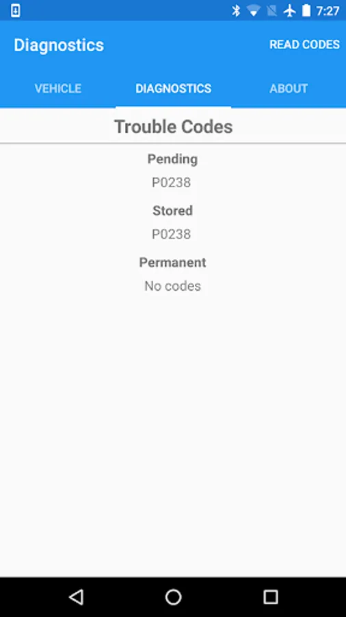 A simple ELM327 trouble code reader. Reads OBD-II trouble codes and DTCS.