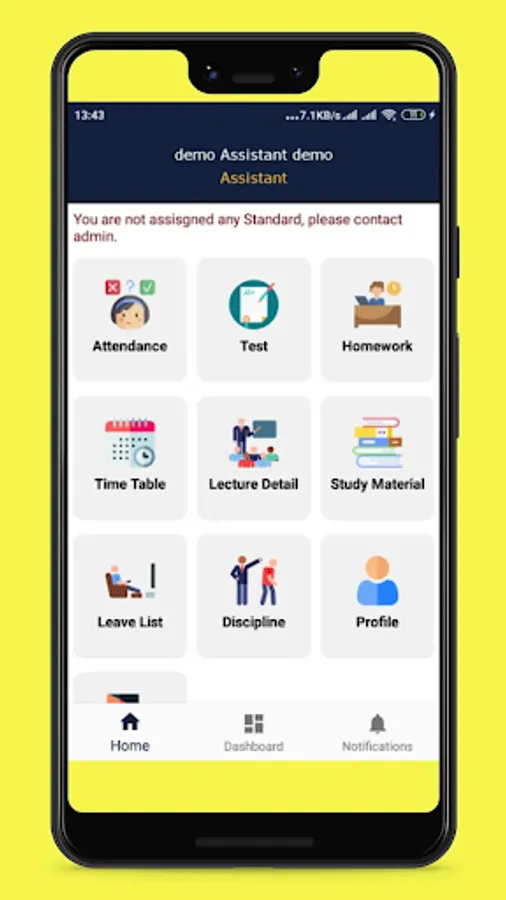 Profile: This option of application provide the information of the student such as name, roll no, date of birth, contact no registered with institute, photograph along with rank student secure in his / her class.
