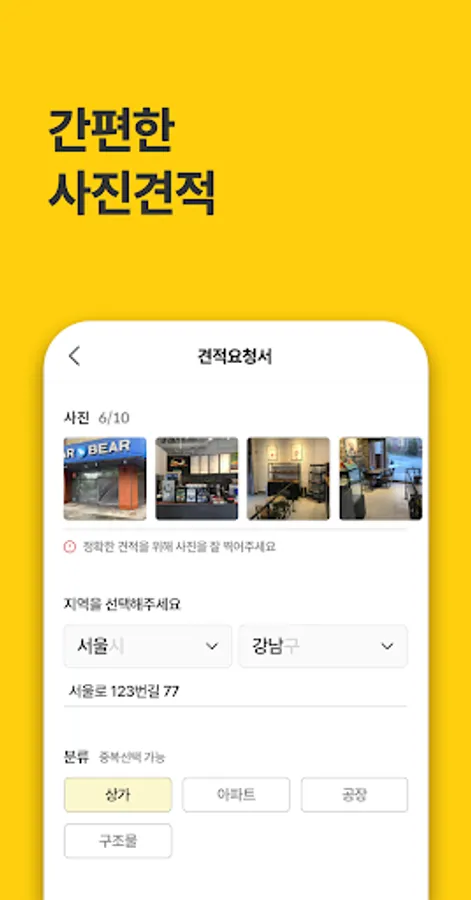● Request for quotation with 5 photos of the site and filling out the request form