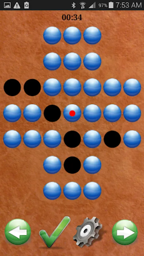 The goal of the game is to get to the minimum number of pegs as possible, such that ultimately only 1 peg or marble is left. For each move this game highlights the hole and peg in green, if a peg cannot be moved it is highlighted with a red dot