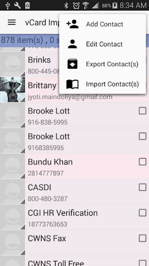 vCard Export Import is the perfect Android app to import and export contacts from or to vCard (VCF) files. It can export single and combined vCard files in both vCard 4.0 and 2.1 standards. The app can import both individual or combined vCard file(s) in vCard 2.1,3.0 and 4.0 formats. Support of multiple formats allows it to import vCard files from multiple sources like Microsoft Outlook, Gmail, Yahoo as well as other Android, Windows and iOS apps.