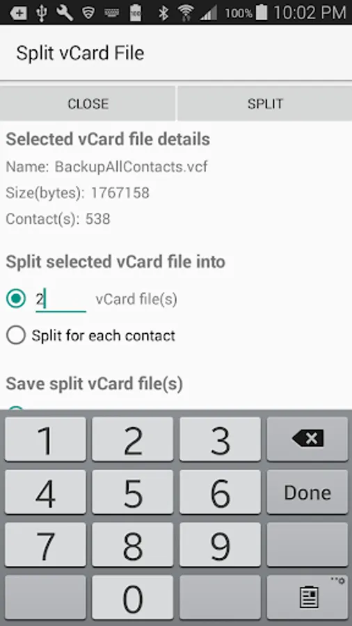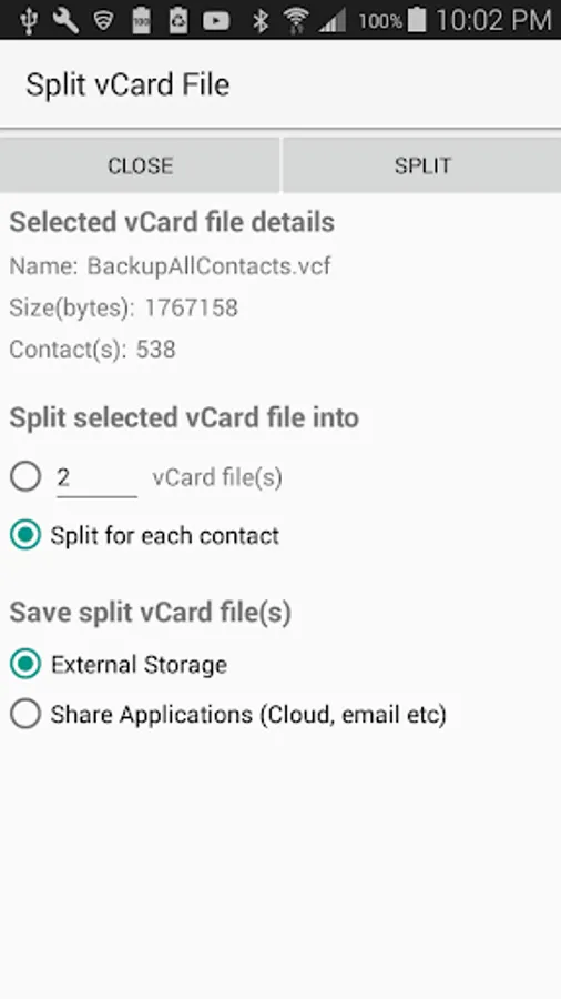 Designed with efficiency the app takes up only a few MB of space in your phone or tablet. The FREE version of the app has full functionality but a single vCard can ONLY be split into a maximum of 10 vCard files. The Pro version has no such limitations.