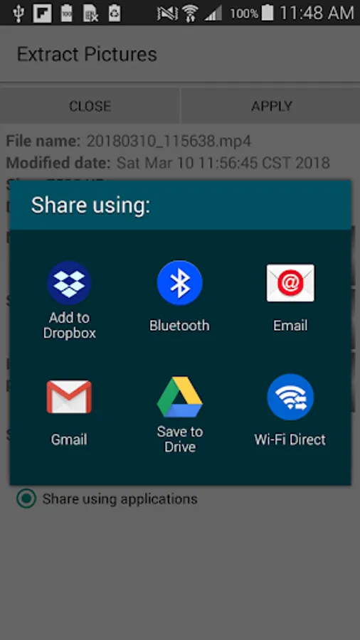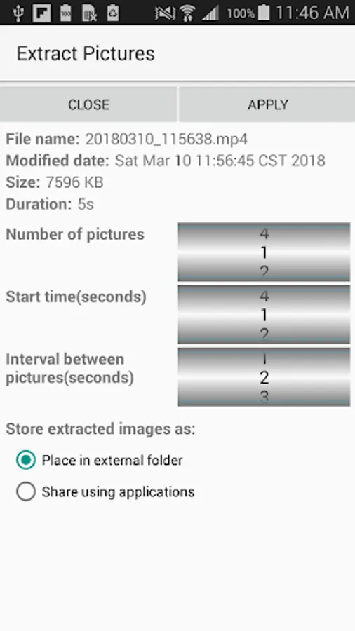 The extracted still pictures can be saved in device storage or can be shared with others using email or text messages. You can also store the extracted images in the cloud.