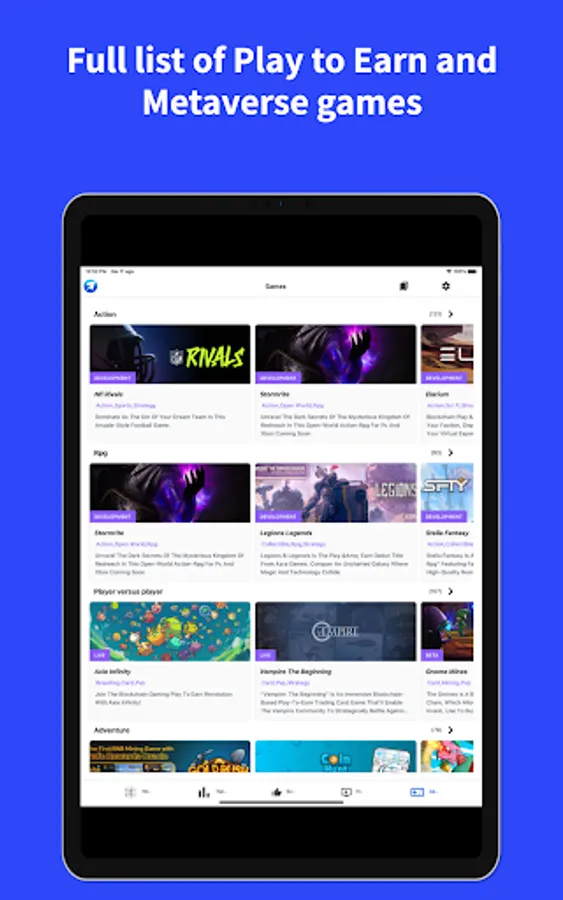 Now you can find a rich catalog of games with the main information that can help you choose the perfect play to earn for you