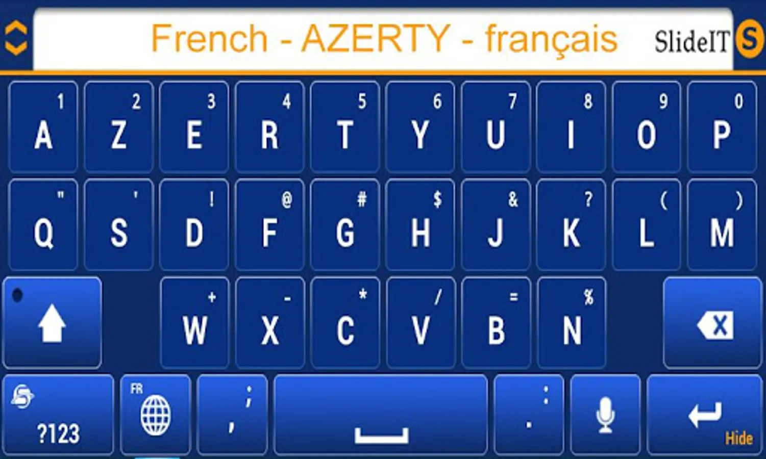 French AZERTY Language Pack addon for the SlideIT Keyboard v5.0 and up.