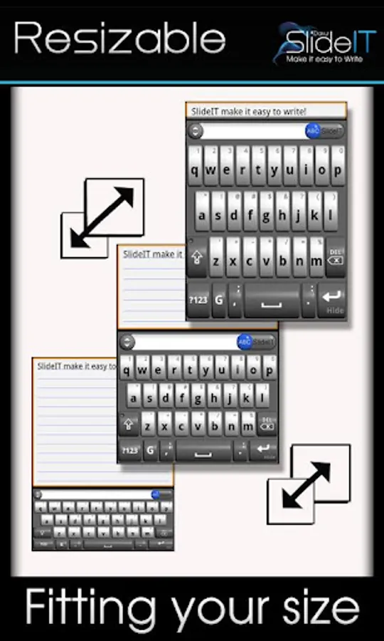 SlideIT's many great features make it the ultimate time-saving keyboard for Android devices. Writing e-mail, SMS messaging or just chating with your friends on a small touchscreen is now easy and fun!