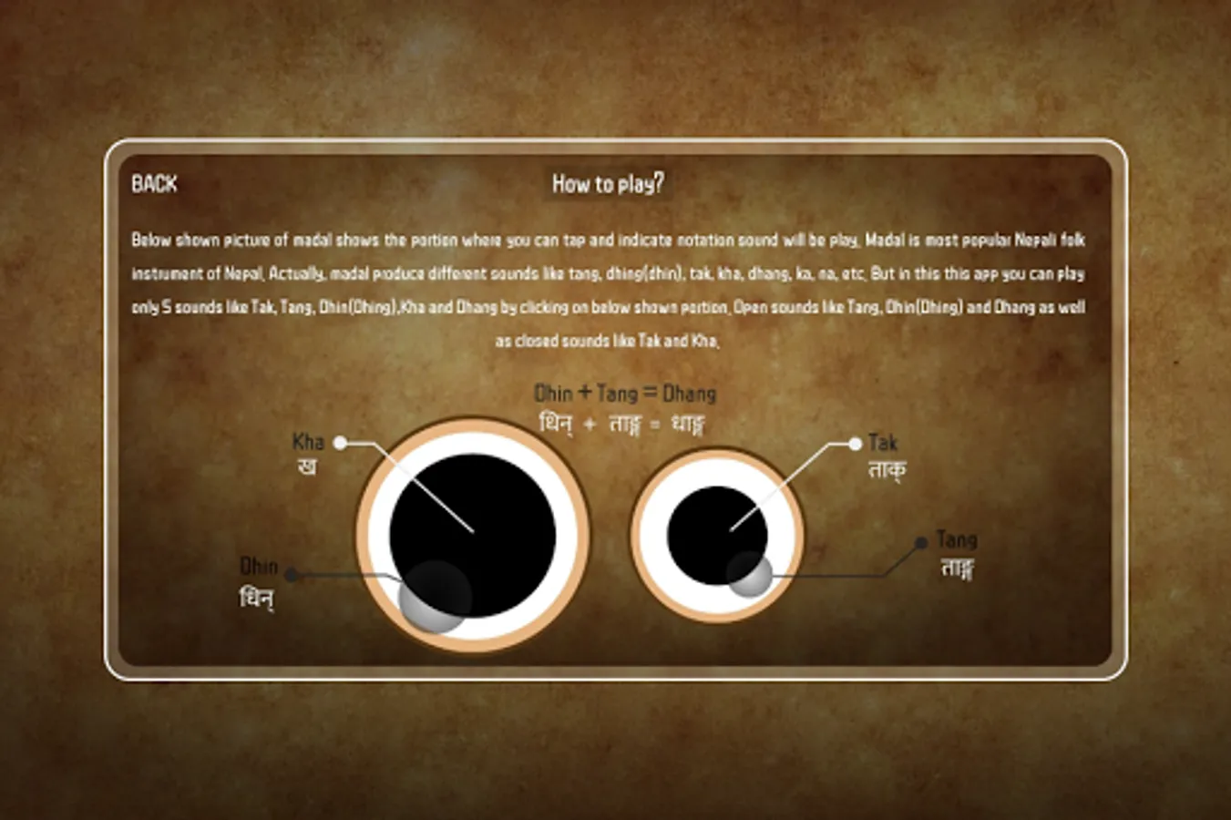 Madal Bajau is a virtual madal where you can play original madal sounds. You can play 5 sounds like dhing, tang tak,