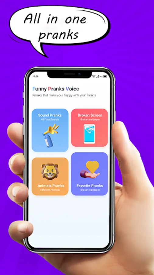 The "Funny Pranks" app is a hilarious way to prank your friends and family with a variety of sounds including fart, burp, laughing, hair clipper, and air horn. Additionally, the app includes broken screen wallpapers and animal wallpapers like cockroaches that can be displayed on your device to add an extra layer of prank fun. Whether you're looking to spice up a dull moment or have a good laugh with friends, the "Funny Pranks" app is the perfect companion for any prankster.