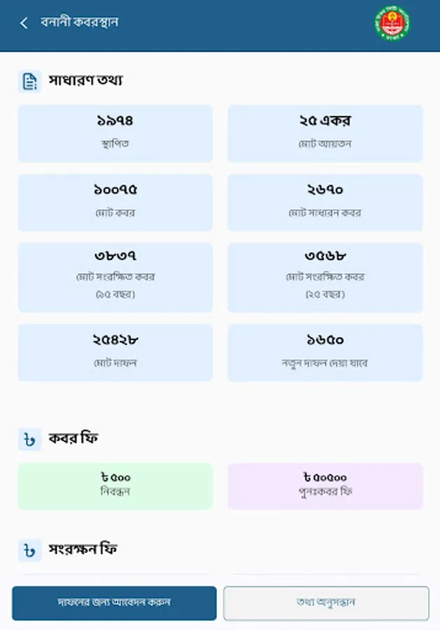 A platform for submitting burial requests and searching graves in graveyard. It will also help you find information about other services such as freezing ambulances and bathing services. And you will know the updated information of your request.