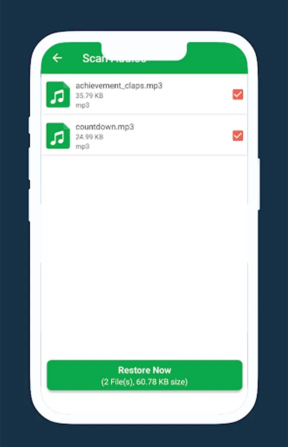 It is a userful deleted audio recovery app. The Data Recovery app is very easy to use. Just open the app, scan the deleted audios and it can help you find and restore deleted audios. Just a few clicks, All the deleted audios you seleted will be restored to your phone.