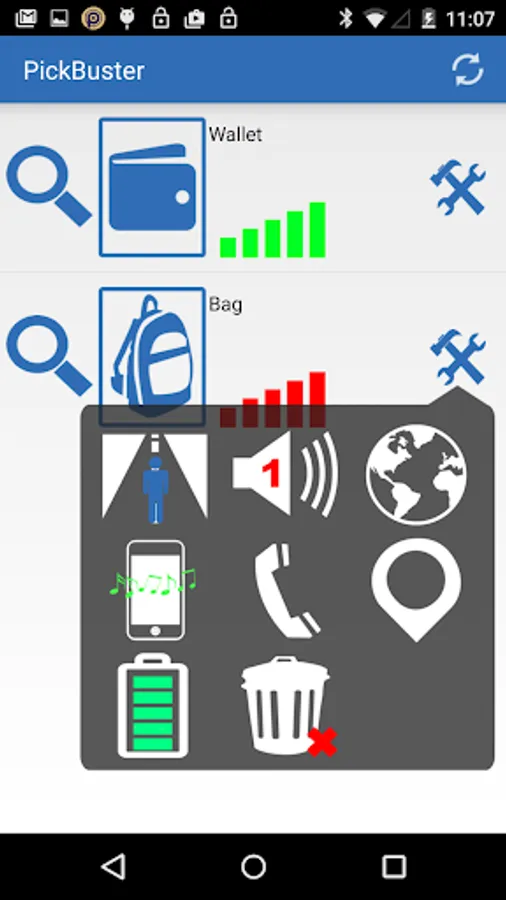 • Photo Sensor alarm: when the light sensor detects light, for example through an intruder opening your wallet, the buzzer and synced smart phone or tablet will both sound alerts.